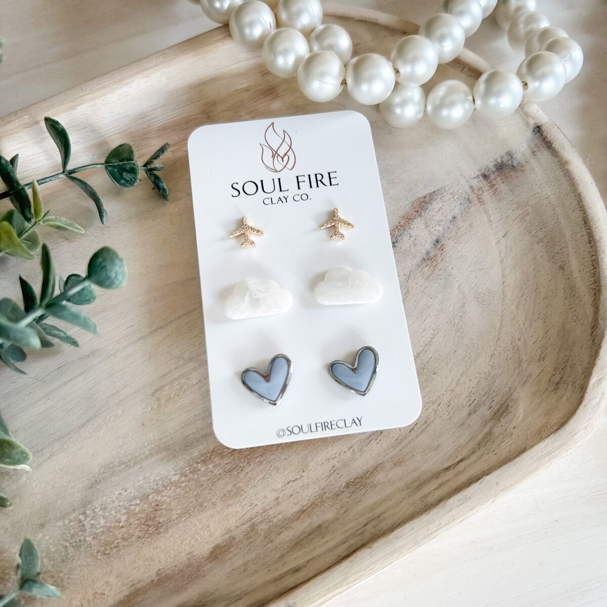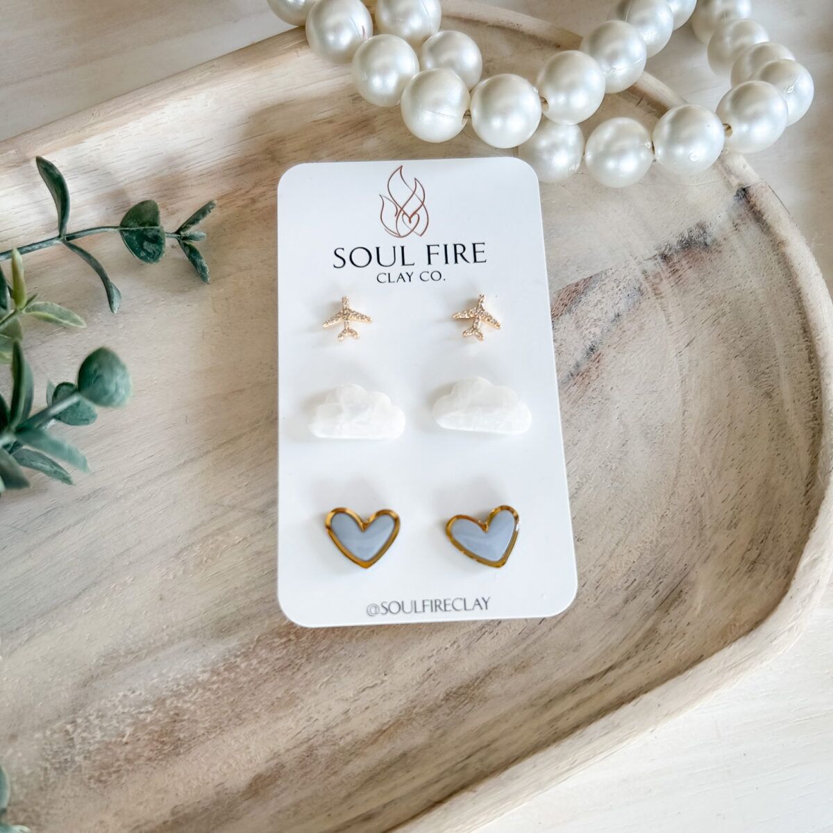 Stud Trio – Framed Heart, Cloud, Airplane Earrings made in Alberta by Soul Fire Clay